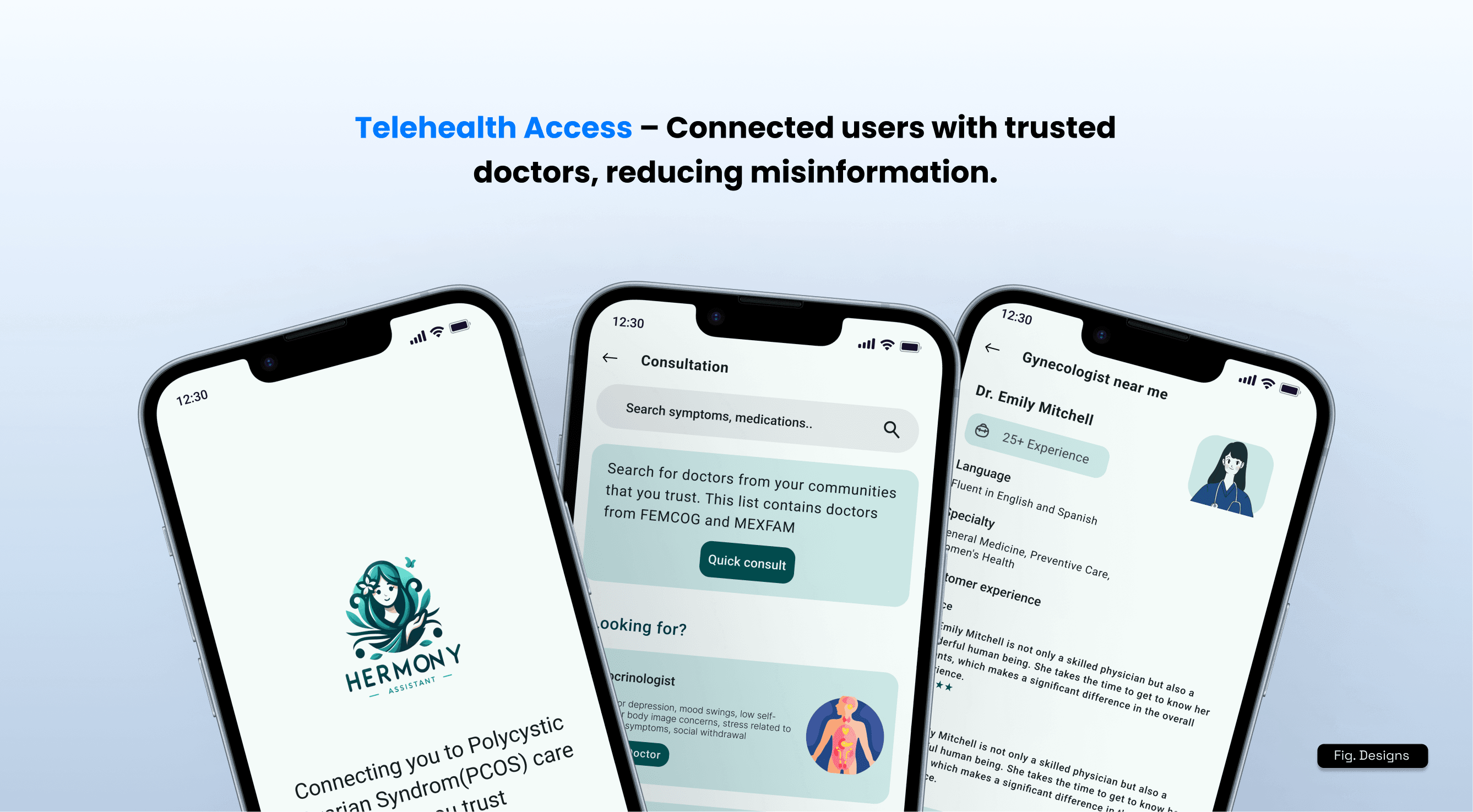 Millions of women suffer from Polycystic Ovary Syndrome (PCOS), yet they face limited healthcare access, misinformation, and a lack of support. Hermony is a culturally adapted, bilingual digital platform that empowers women with personalized symptom tracking, telehealth access, and a supportive community.